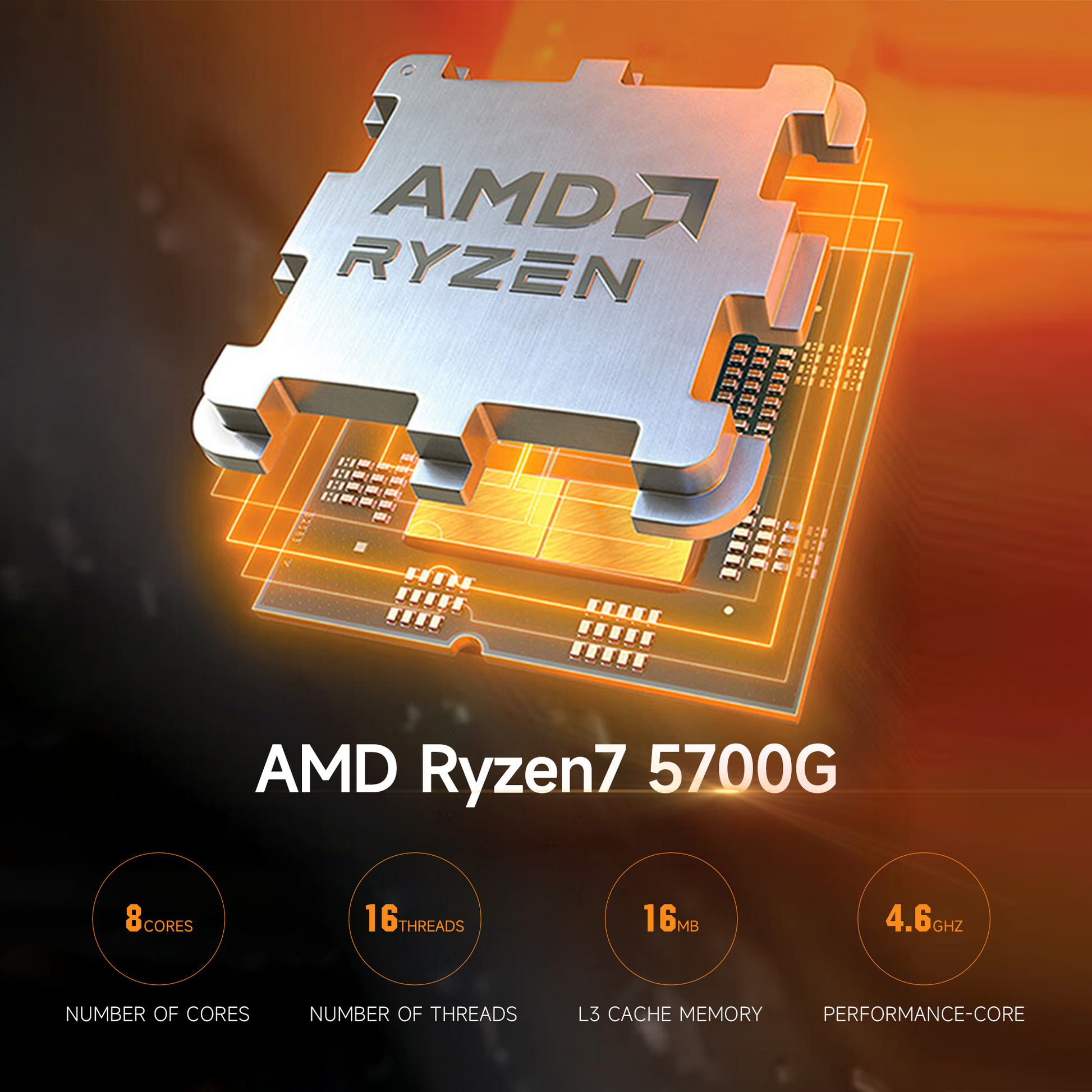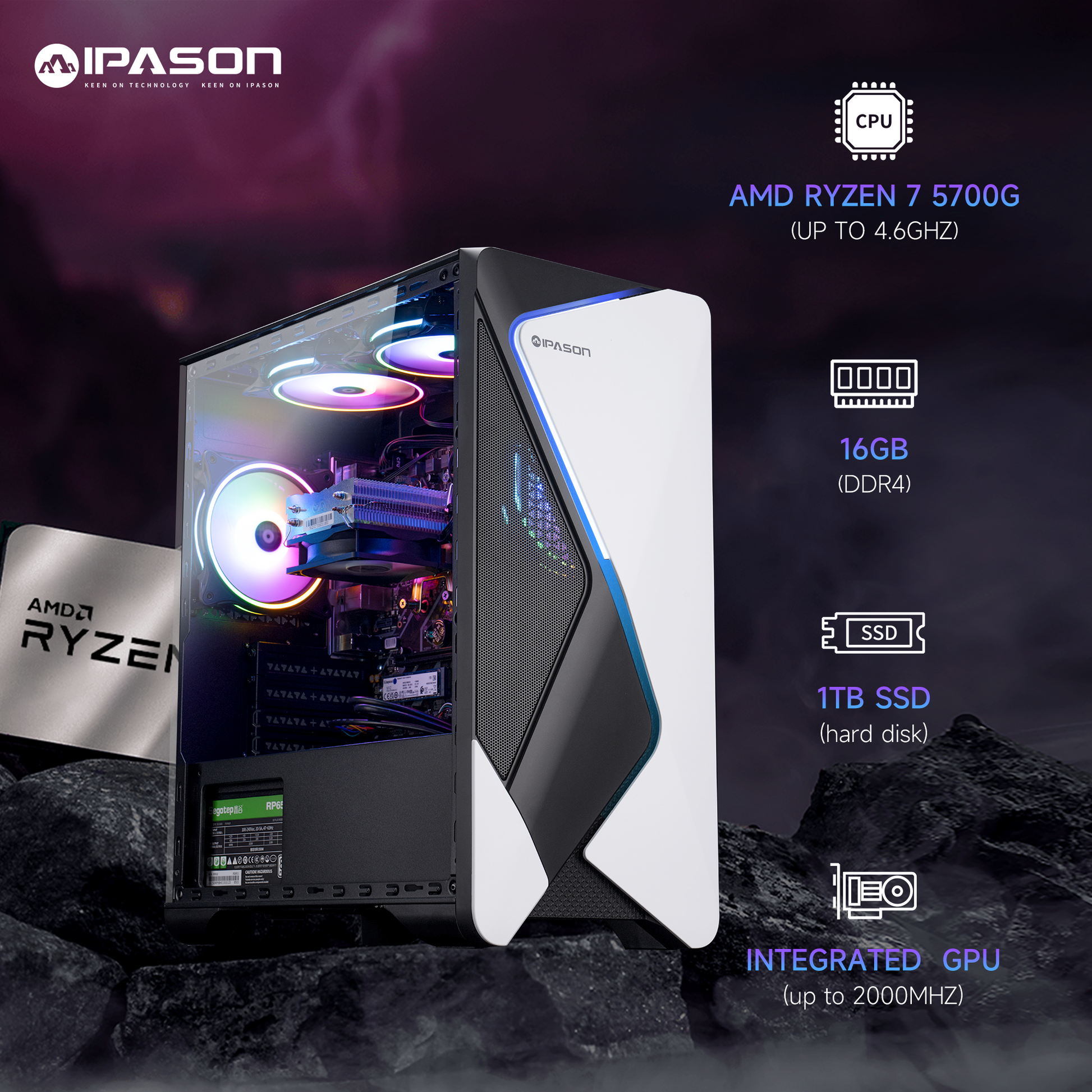 Ipason Battlefield S7 Pro AMD Ryzen 7 5700G 8x Cores 16x Threads up to 4.6GHz Radeon Graphics DDR4 16G 3200MHz Kingston Nvme 1T M.2 SSD Windows 11 Home